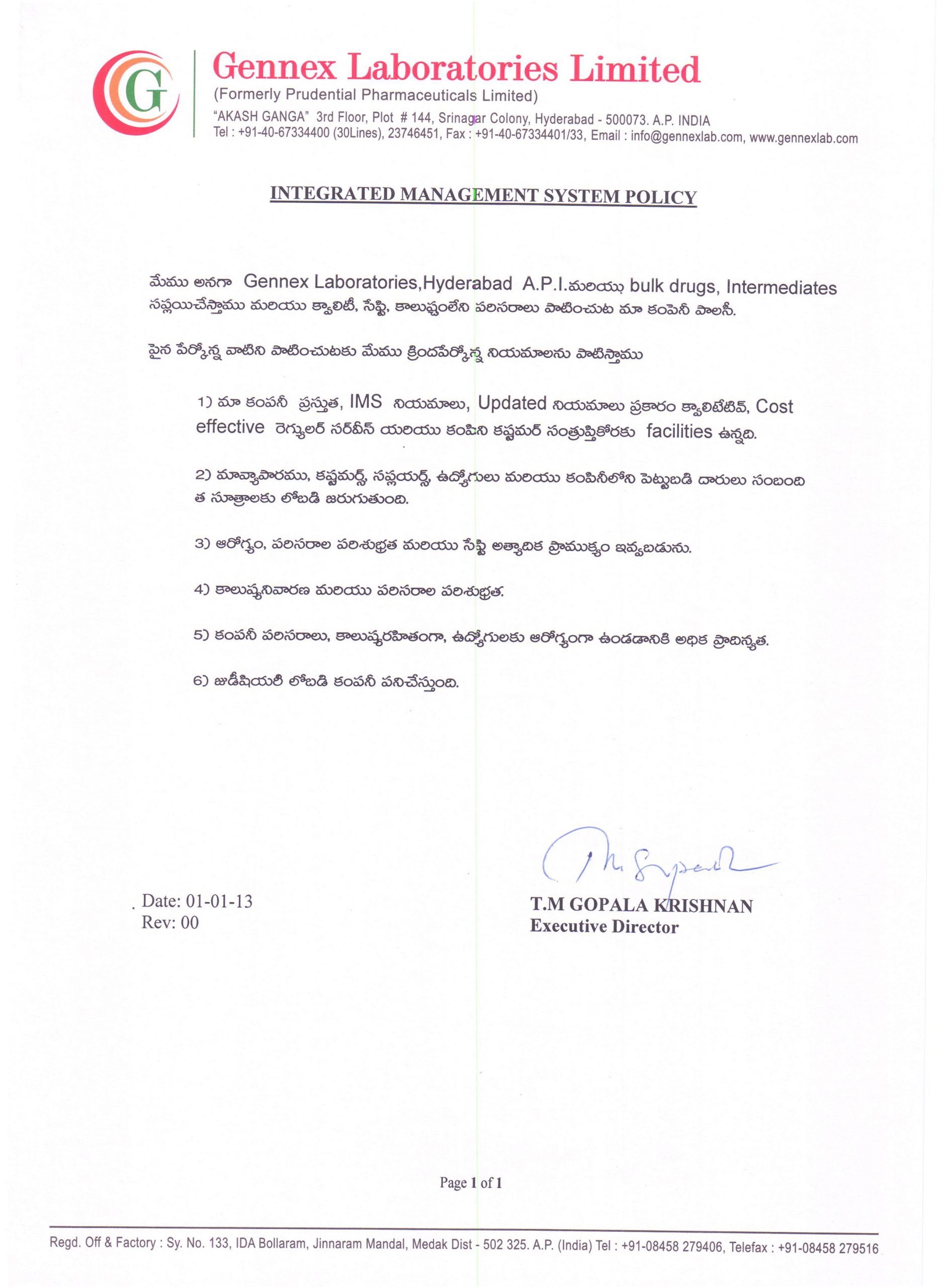 Deccan Remedies Limited ‘Akash Ganga’ 4th Floor Plot No.144, Srinagar Colony Hyderabad – 500073 Telangana (NDIA)